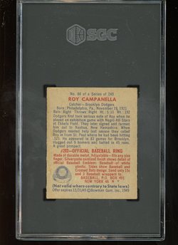 1949 Bowman Baseball #084 Roy Campanella Rookie SGC 4 Brooklyn Dodgers HOF