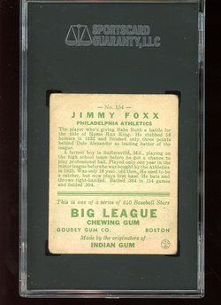 1933 Goudey Baseball #154 Jimmy Foxx SGC 3 Philadelphia A's HOF