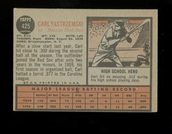 1962 Topps Baseball #425 Carl Yastrzemski Boston Red Sox HOF