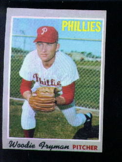 1970 Topps Baseball High Number Card (#677) of former Philadelphia Phillies Pitcher, Woodie Fryman. Card is EX+ with some corner wear/dings and no creases. No writing, pin holes, tape stains. See scan for centering.
