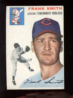 1954 Topps Baseball Card (#71) of Former Cincinnati Reds Pitcher, Frank Smith. Card is VG-EX with some corner wear / corner creases. No writing, pin holes, tape stains. See scan for centering