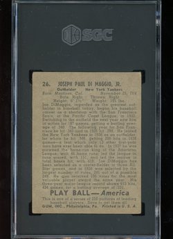 1939 Play Ball Baseball #026 Joe DiMaggio SGC 3 New York Yankees HOF