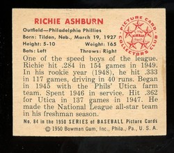 1950 Bowman Baseball #084 Richie Ashburn Philadelphia Phillies HOF