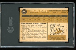 1960 Topps Baseball Number Card (#200) of San Francisco Giants Hall-of-Fame Outfielder, Willie Mays. Card is professionally graded 8 NM-MT (Near Mint to Mint) by SGC.