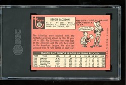 1969 Topps Baseball Rookie Card (#260) of Oakland A's / New York Yankees Hall-of-Fame Outfielder, Reggie Jackson. Card is professionally graded 5.5 (Excellent Plus) by SGC.