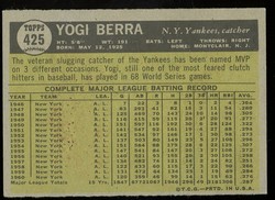 1961 Topps Baseball #425 Yogi Berra New York Yankees HOF