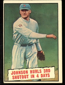 1961 Topps Baseball #409 Walter Johnson Hurls 3rd shutout in 4 Days Senators HOF