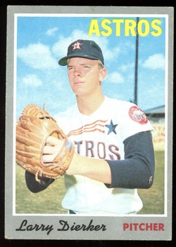 1970 Topps Baseball Card (#15) of Houston Astros Star Pitcher, Larry Dierker. Card is EX+ with some corner wear and no creases. No writing, pin holes, tape stains. Ding in the lower left corner. See scan for centering.