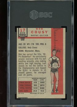 1957 Topps Basketball #017 Bob Cousy Rookie SGC 1.5 Boston Celtics HOF