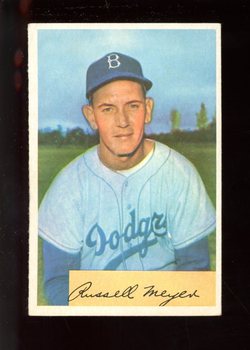 1954 Bowman Baseball #186 Russ Meyer Brooklyn Dodgers