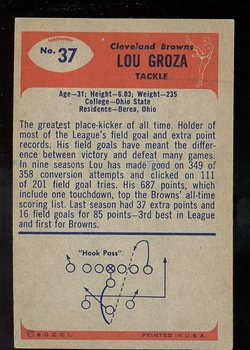 1955 Bowman Football Card (#37) Of Cleveland Browns Hall-of-Fame Tackle, Lou Groza.