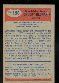 1955 Bowman Football #158 Chuck Bednarik Philadelphia Eagles HOF
