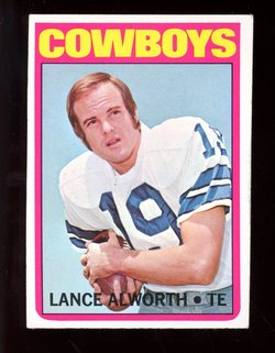 1972 Topps Football Card (#248) of Dallas Cowboys / San Diego Chargers Hall-of-Fame Wide Receiver, Lance Alworth. Card is EX+ with some corner wear and no creases. No writing, pin holes, tape stains. See scan for centering.