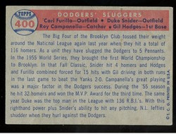 1957 Topps Baseball #400 Dodgers Sluggers Snider Campanella