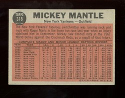 1962 Topps Baseball #318 Mickey Mantle In Action The Switch Hitter Connects