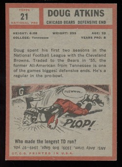 1962 Topps Football Card (#21) of Chicago Bears Hall-of-Fame Defensive End, Doug Atkins.
