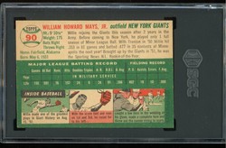 1954 Topps Baseball Card (#90) of New York Giants Hall-of-Fame Outfielder, Willie Mays. Card is professionally graded 6.5 EX-MT+ (Excellent to Mint Plus) by SGC.