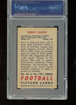1951 Bowman Football #034 Sammy Baugh PSA 6 Washington Redskins HOF