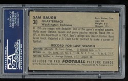 1952 Bowman Large Football Card (#30) of Washington Redskins Hall-of-Fame Quarterback, Sammy Baugh. Card is professionally graded 4 VG-EX (Very Good to Excellent) by PSA.