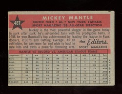 1958 Topps Baseball #487 Mickey Mantle All-Star New York Yankees HOF