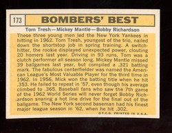 1963 Topps Baseball Bombers Best Card (#173) Featuring Former New York Yankees Tom Tresh, Bobby Richardson and Mickey Mantle.