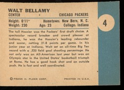 1961-1962 Fleer Basketball Rookie Card (#4) Of Chicago Packers / Atlanta Hawks Hall-of-Fame Center, Walt Bellamy.