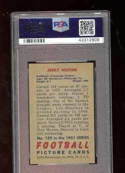1951 Bowman Football #129 Jerry Nuzum PSA 7 Pittsburgh Steelers