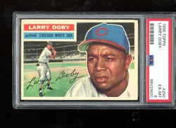 1956 Topps Baseball Card (#250) of Chicago White Sox / Cleveland Indians Hall-of-Fame Outfielder, Larry Doby. Card is graded 6 EX-MT (Excellent to Mint) by PSA.