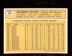 1963 Topps Baseball Card (#320) of Milwaukee Braves Hall-of-Fame Pitcher, Warren Spahn.