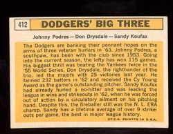 1963 Topps Baseball #412 Dodgers Big Three Don Drysdale Sandy Koufax