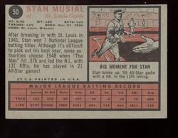 1962 Topps Baseball Card (#50) of St Louis Cardinals Hall-of-Fame Outfielder, Stan Musial.