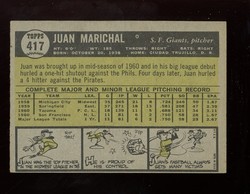span style="font-weight: bold;">1961 Topps Baseball Rookie Short Print Card (#417) of San Francisco Giants Hall-of-Fame Pitcher, Juan Marichal. Card is EX-MT with some corner wear and no creases. No writing, pin holes, tape stains. See scan for centering.