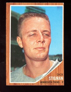 1962 Topps Baseball High Number Card (#532) of former Minnesota Twins Pitcher, Dick Stigman.
