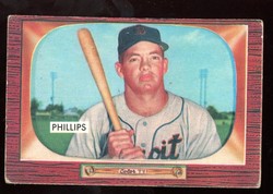 1955 Bowman Baseball High Number Card (#228) of former Detroit Tigers Outfielder, John Phillips. Card is VG-EX with some corner wear/dings and light corner creasing. No writing, pin holes, tape stains. See scan for centering.