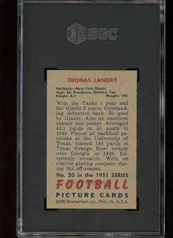 1951 Bowman Football #020 Tom Landry Rookie SGC 7 New York Giants HOF