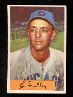 1954 Bowman Baseball Card (#109) of former Chicago Cubs Shortstop, Roy Smalley. Card is EX with some corner wear/dings and no creases. No writing, pin holes, tape stains. See scan for centering.