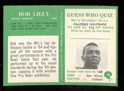 1966 Philadelphia Gum Co. Football Card (#60) of Dallas Cowboys Hall-of-Fame Defensive End, Bob Lilly.
