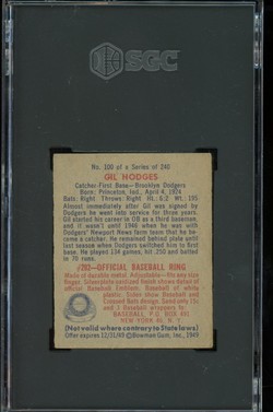 1949 Bowman Baseball #100 Gil Hodges Rookie SGC 3.5 Brooklyn Dodgers HOF