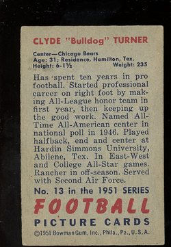 1951 Bowman Football #013 Cylde Turner Chicago Bears HOF