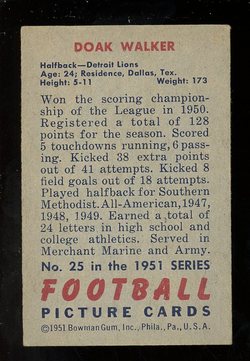1951 Bowman Football #025 Doak Walker Detroit Lions HOF