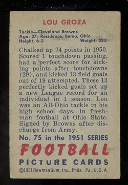 1951 Bowman Football #075 Lou Groza Cleveland Browns HOF