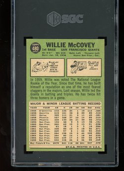 1967 Topps Baseball Card (#480) of San Francisco Giants Hall-of-Fame 1st Baseman, Willie McCovey. Card is graded 7.5 NM+ (Near Mint Plus) by SGC.