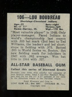 1948 - 1949 Leaf Baseball #106 Lou Boudreau Cleveland Indians HOF