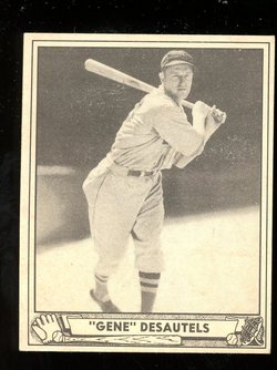 1940 Play Ball Baseball Card (#28) of Boston Red Sox Catcher, Gene Desautels. Card is EX-MT with some corner wear and no creases, See scan for centering.