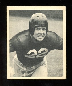 1948 Bowman Football Rookie Card (#10) of New York Giants Running Back, Chris Iverson. Card is EX+ with some corner wear and no creases. No writing, pin holes, writing. See scan for centering.