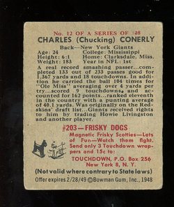 1948 Bowman Football #012 Charley Conerly Rookie New York Giants SP