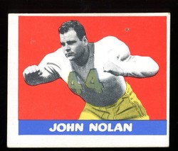 1948 Leaf Football Rookie Card (#40 - Yellow Jersey) of Boston Yanks Tackle, John Nolan. Card is EX+ with some corner wear/dings and no creases. See scan for centering.