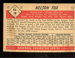 1953 Bowman Color Baseball Card (#18) of Chicago White Sox Hall-of-Fame 2nd Baseman, Nellie Fox. Card is EX-MT with some corner wear and no creases. No writing, pin holes, tape stains. See scan for centering.