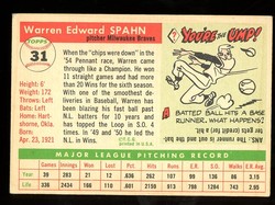 1955 Topps Baseball #031 Warren Spahn Milwaukee Braves HOF