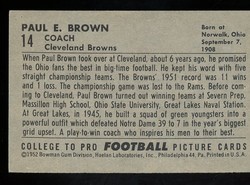 1952 Bowman Large Football Card (#14) of Cleveland Browns Hall-of-Fame Heqad Coach, Paul Brown. Card is EX-MT with some corner wear and no creases. See scan for centering.